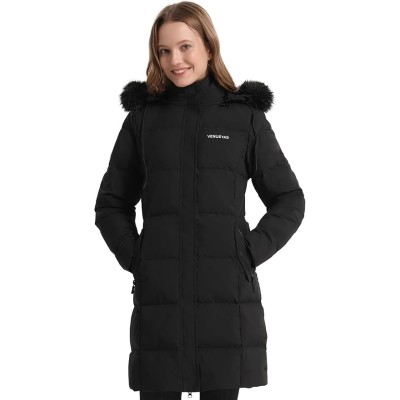 Venustas Women's Long Down Coat with Detachable Faux Fur Hood, Water-Repellent Winter Puffer Parka Jacket